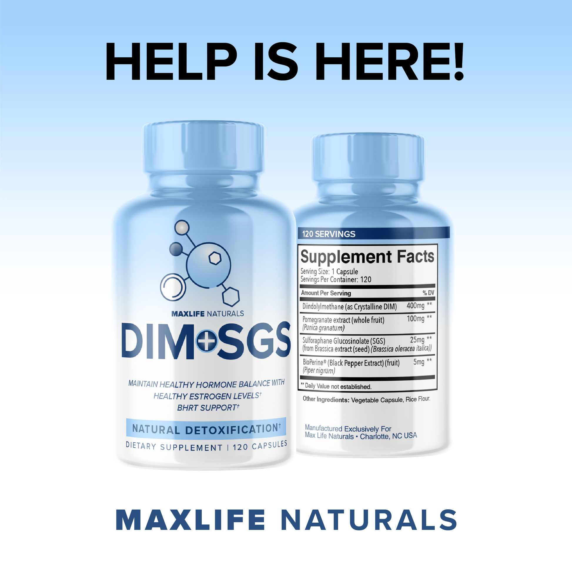 A single bottle of DIM+SGS contains up to a 2 month supply of a high dose of DIM and 25mg of SGS in vegetable capsules with bioperine to absorb them.