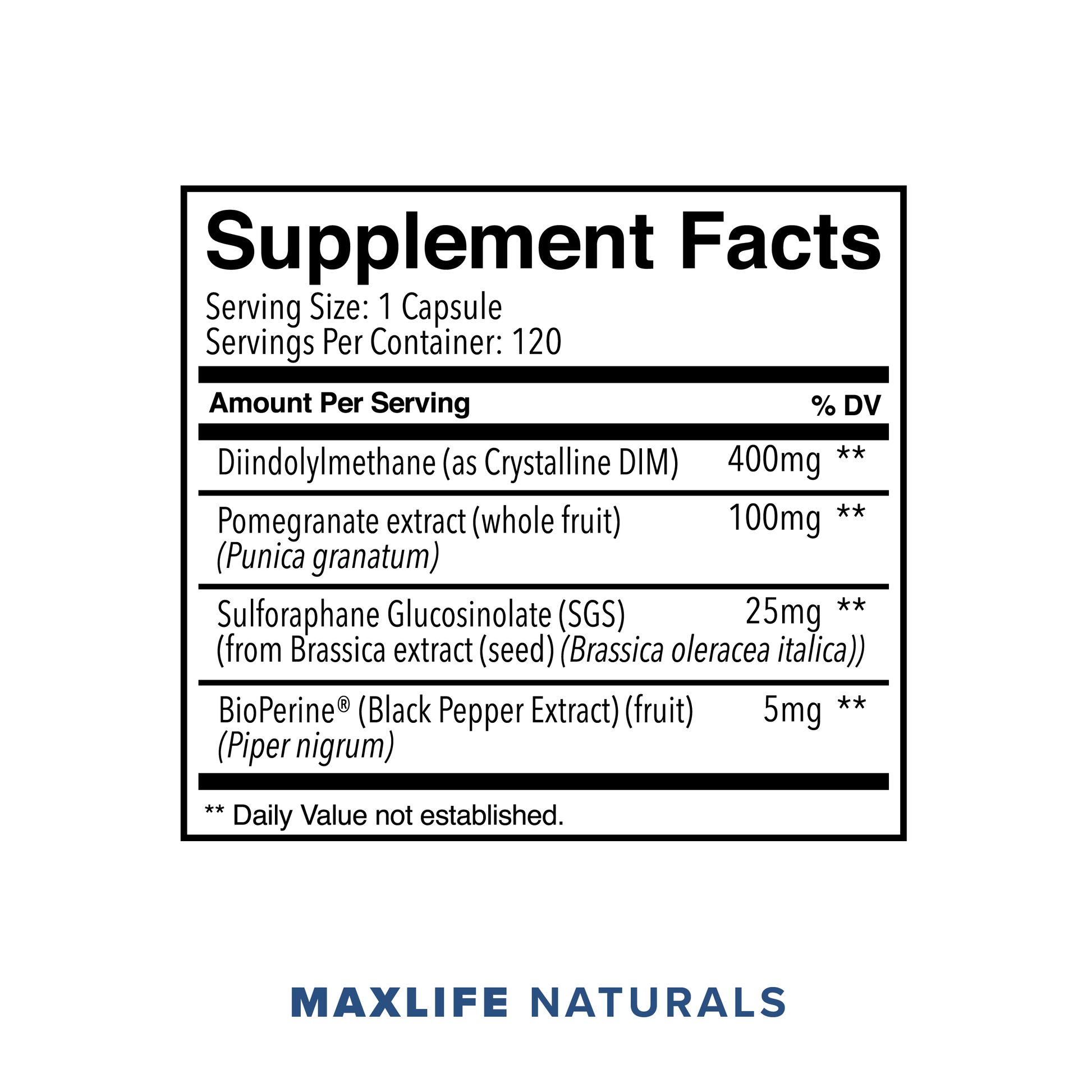 - 400mg of DIM with 25mg of SGS per serving