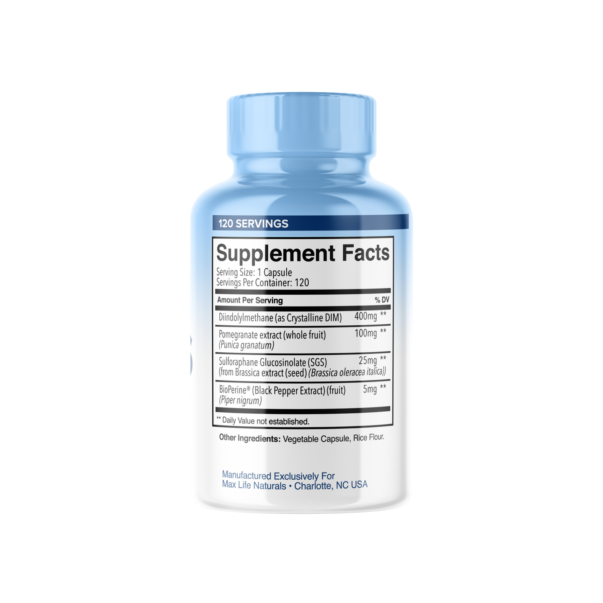 Each serving has 400mg of Diindolylmethane as well as bioperine which ensures optimum absorption into the body! This formula is manufactured in the USA without fillers or harmful chemicals so you can feel confident knowing that every day you are moving closer to an optimal you.